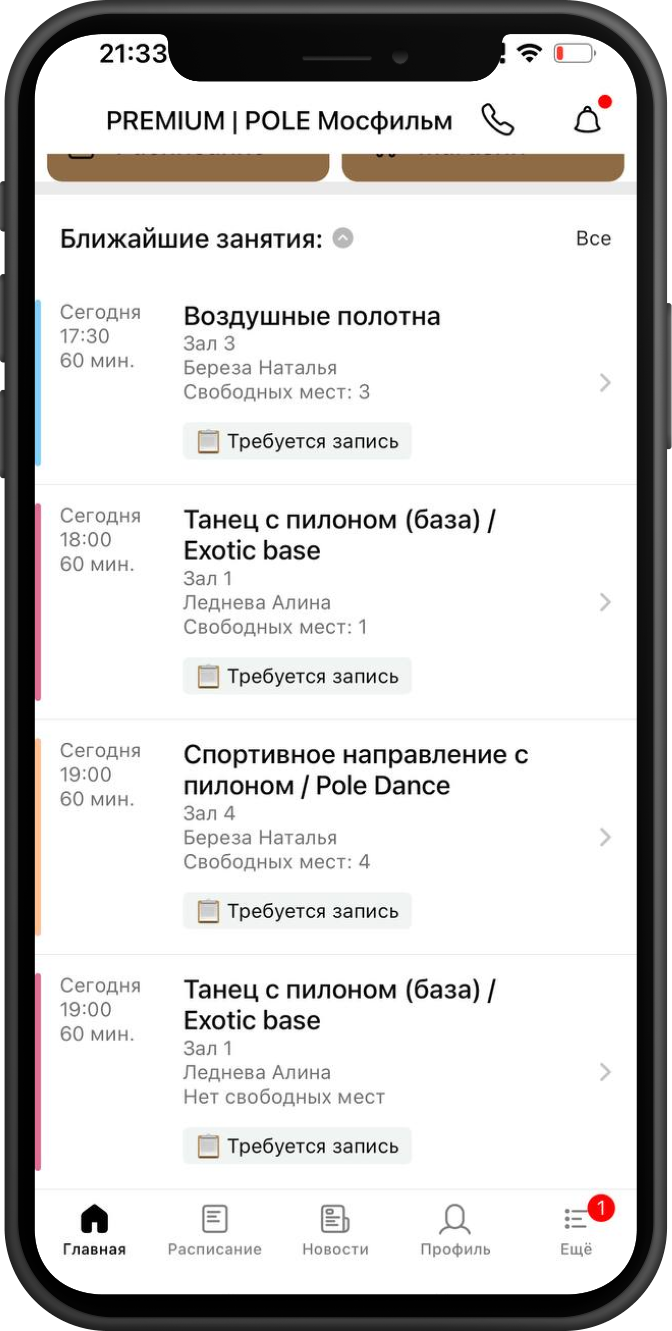 Форма одежды: для занятий подойдет топ и шорты (для большего соприкосновения тела с пилоном) и наколенники.